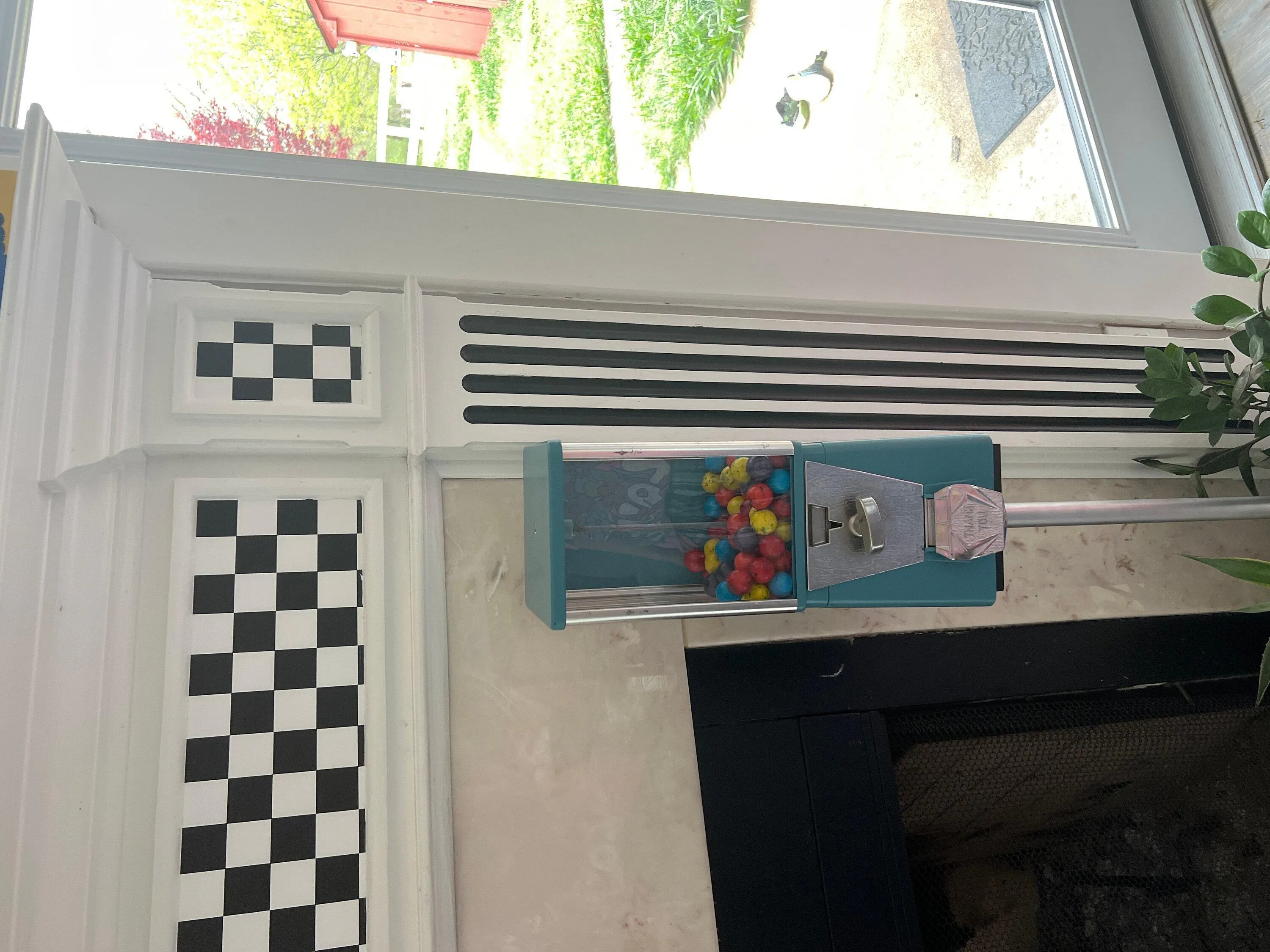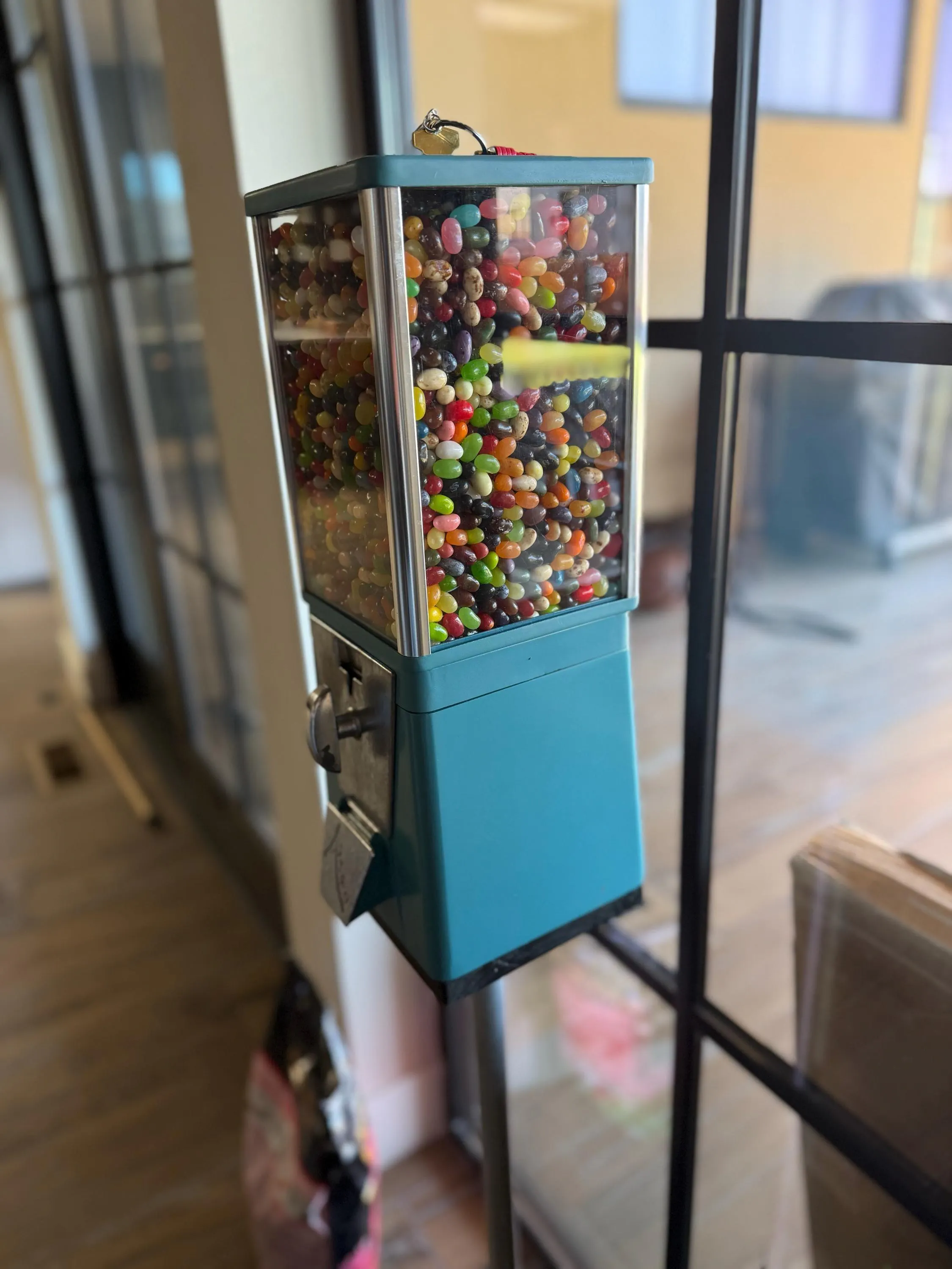 The machine is fully functional and coin-operated, designed to work with quarters and hold gumballs up to 1.1 inches in size. Simply insert a quarter, turn the handle, and enjoy a classic gumball experience. Refilling is easy using the included key. Insert it into the top and turn firmly to open the lid.